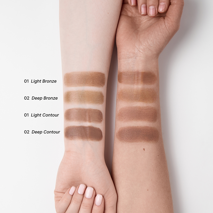 Матовая кремовая текстура продукта становится более пластичной при разогревании на коже и легко распределяется, не оставляет пятен и полос на лице. Для более плотного цвета и выразительного скульптурирующего эффекта продукт можно наслоить.