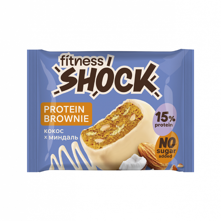 Главная / Продукты / Здоровый перекус / Протеиновое печенье глазированное Брауни "Миндаль-Кокос" FitnesShock