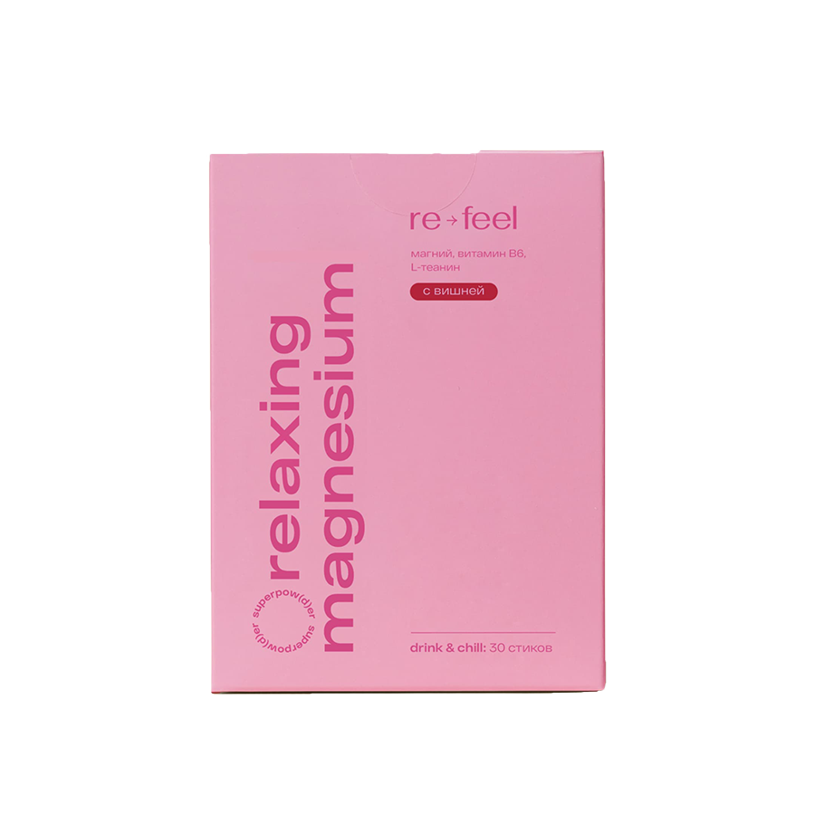 Растворите 1 стик магния re-feel в стакане воды и тщательно перемешайте. Выпейте за один раз. Now relax.
