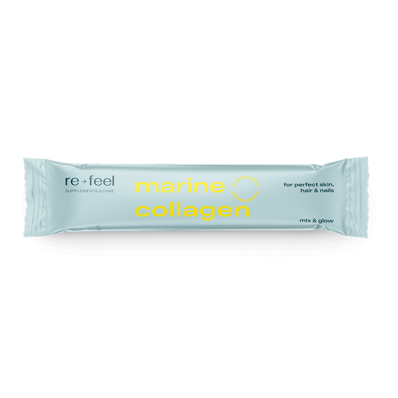 В одном стике коллагена re-feel — дневная доза: 5 граммов. Именно столько коллагена, по данным исследований, нужно принимать для ощутимого эффекта.
